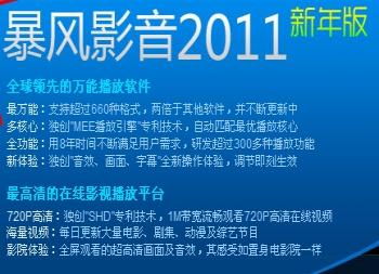 暴风影音——全球领先的万能播放器 一次安装、终身更新,再也无需为文件无法播放烦恼! 更万能! 支持249种格式,并不断更新中! 更具生命力! 专业媒体分析小组双重更新,持续升级! 更专业!更易用! 新增:动态换肤、播放列表、均衡器等功能。 暴风影音版本号 优化了1条QuickTime文件的渲染链;...
