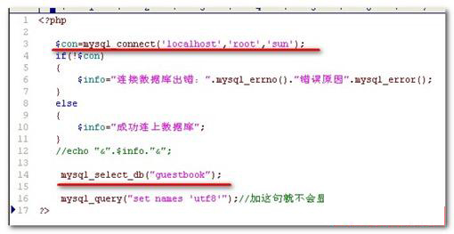 1¡¢ÏȽéÉÜÈçºÎÓÃPHPÁ¬ÉÏÊý¾Ý¿â£¨Êý¾Ý¿âÓû§Ãû¡°root¡±£¬ÃÜÂë¡°sun¡±£¬Óп⡰myguestbook¡±£©