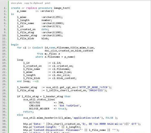所以,以前我们一直希望Apache或mod_plsql能够缓存我们的图片,但实际上我们(PL/SQL程序员)是要做这个缓存的人。不过幸好它很简单,特别是现在你已了解了这个问题。