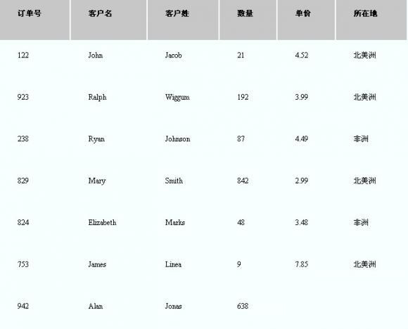 我们将使用下文所示的ProductOrder表来执行我们所有的查询。注意,这个表并没有标准化,而是将几个数据实体联合到一个表中,这样做是为了简化条件方便说明。如果要设计较好的关系数据库,应当把这些内容至少分成三个关联表Products、Orders和Customers。