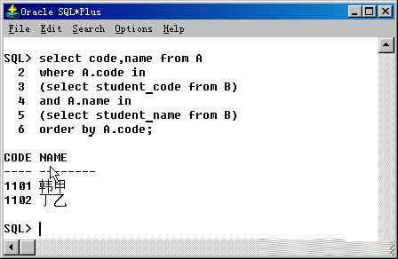 仍以A和B两张数据表为例,在oracle中运行以下查询,图2显示了这个查询的结果: