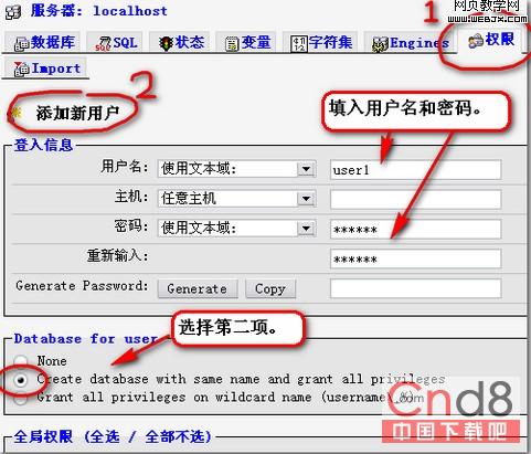 可能你还需要为每个虚拟主机分配 MySQL 数据库,下面介绍如何使用 phpmyadmin分配用户和数据库。