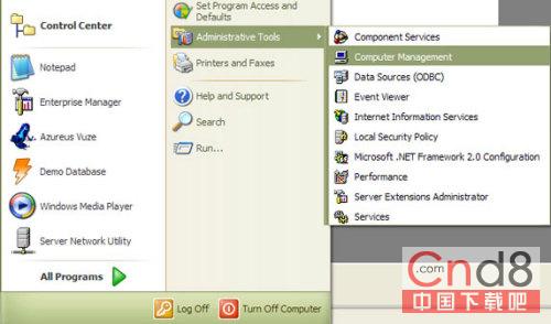 1. 选择 Start > All Programs > Administrative Tools > Computer Management,如图 1 所示: