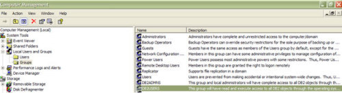 图 2. Computer Management 下面的 DB2 Users Group