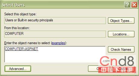 3. 向组中添加 ASPNET 用户和 Operating System 用户,如图3、4、5 和 6 所示: