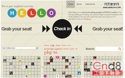 图。 1 -的Hello显示该事件的事件头版座位,每个椅子是由一个正方形,如果有一个椅子上,我们展示他们叽叽喳喳头像的用户。