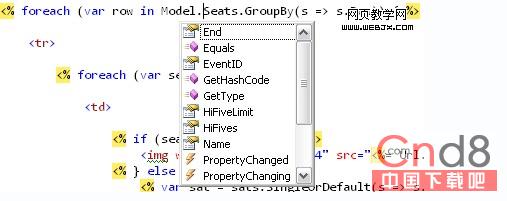 <table class="seatingPlan" cellpadding="0" cellspacing="0" border="0"> <% var sats = (IList<Sat>)ViewData["Sats"]; %> <% foreach (var row in Model.Seats.GroupBy(s => s.Row)) { %><tr> <% foreach (var seat in row) { %><td> <% var sat = sats.SingleOrDefault(s => s.SeatID == seat.SeatID); %> <% if (sat == null) { %><img src="<%= Url.Content("~/Content/images/presentation/smiley.jpg") %>" /> <% } else { %><img src="<%= sat.User.ImageURL %>" /> <% } %></td> <% } %></tr> <% } %></table>这是更加直观和清楚总比创建用户控件类,然后是动态的隐藏代码实例和作为一个ASP TableRow,然后将子控件添加又增加了一个ASP表,等您的代码前面会的基本一条线...<asp:Table runat="server" ID="SeatsTable" />...完全隐藏在背后的代码,这将有可能是数据访问代码和布局风格混乱复杂打结在一起。这正是你在的WebForms工作。那么,为什么这更好?这可能有两个WebForms和MVC之间的主要差别。第一,分离关注:MVC的鼓励你分开从您的UI从您的网址的路由域模型。的WebForms实际上使不少困难,如果有的话,前面的代码隐藏模式/鼓励相反。其次,没有不必要的漏水的抽象:的WebForms试图隐瞒事实的开发商,他是在一个世界工作字符串操作较无状态的协议。在简单的情况下这可以工作,例如:经典点击的按钮到化妆品的标签,说,你好的例子。但在现实世界中,很快得到抽象的方式,你最终不得不非常努力地去争取一些东西,很简单。 MVC中没有人对抽象的战斗,你有你的Web应用程序的所有部分完全控制。我要去把自己放在那里,说的MVC应该被看作是对的WebForms更换,因为我不觉得有任何真正的世界情况下,当MVC是不是正确的选择。