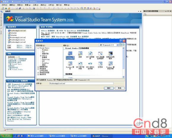 打开 Visual Studio 2008在文件 (File) 菜单上,单击新建项目 (New Project)。 在新建项目 (New Project) 对话框的模板 (Templates) 窗格中,单击 Windows 应用程序(Windows Application)。单击确定 (OK) 如图1。