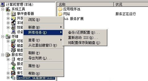iis的重启可以通过鼠标右键我的电脑 --> 管理 进行重启