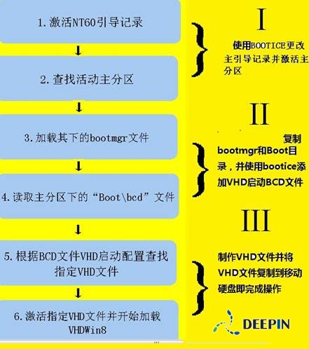 本文的方法是通过启动移动硬盘里装有Win8系统的VHD文件,从而实现移动系统的效果