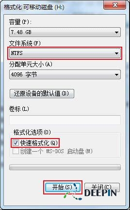 开始”按钮进行格式化。如果没有格式话,可能会出现警告,甚至可能无法安装。