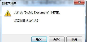 4、如果新设置的文件夹还没有创建,系统会弹出对话框提示我们,选择“是”。