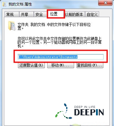 3、右键点击我的文档,打开“属性”对话框,切换到“位置”选项卡,输入你要保存的文件夹地址,例如 D:\My Document ,然后点击确定保存修改。