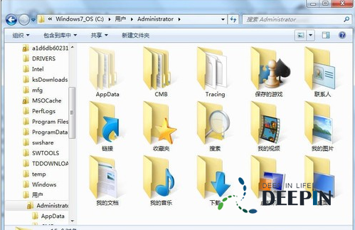 2、默认状态下,我的文档、我的图片、我的视频、我的音乐和下载这几个文件夹都保存在此目录中。