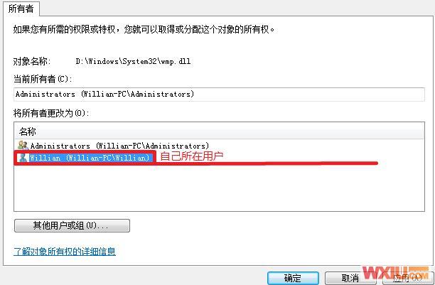 4.点击自己所在的用户名>"确定"按钮