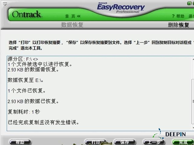 7、点击下一步进行扫描后,会出现恢复摘要,你可以打印出来也可以保存为文件(大家可以灵活选择应用)