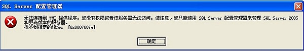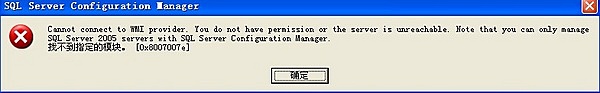 注意一下:上述的mofcomp命令在C:\WINDOWS\system32\wbem目录下。 通过这个博客的留言,貌似有些人用这个方法解决了问题。我进入了windows的命令处理器,按照这个方法试了一下,得到了和他一样输出的结果,很兴奋, 以为问题解决了。再次进入Server Configuration Manager,不幸的是还是弹出了同样的警告框。继续在网上搜,由于关键字大部分是英文的,搜到的英文网页中除了上述的方法转载就是抱怨……