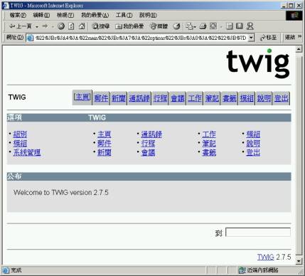 。twig 预设会有 主页 | 邮件 | 新闻 | 通讯簿 | 行程 | 会议 | 工作 | 笔记 | 书签 | 模块 | 说明 | 注销 等选项