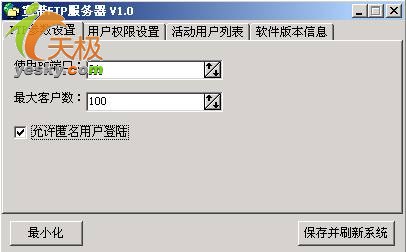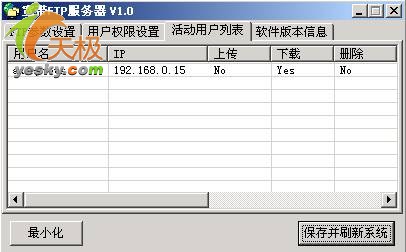 3、在“活动用户列表”项(图9)中显示的最近访问FTP服务器的用户情况。最后将输入的参数“保存并刷新系统”。
