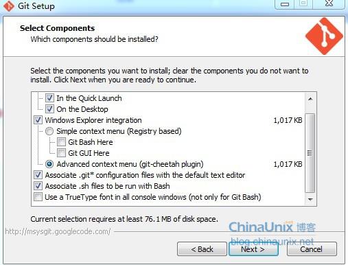 c、next进入Git安装模块选择,默认,如下图: