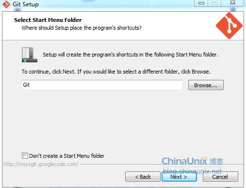 d、next进入Git setup界面,“Select start menu folder”,默认,如下图:
