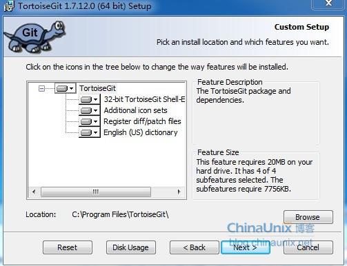 c、next进入“Custom Setup”界面,选择默认值,如下图所示: