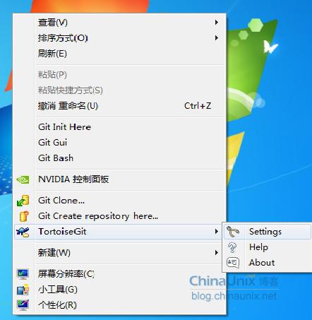 e、至此,TortoiseGit安装完成。在桌面空白处点击右键,右键菜单中会加入TortoiseGit快捷键,如下图所示: