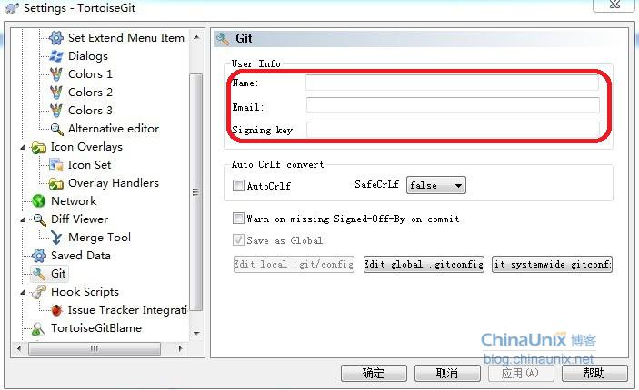 注:如果暂时在本地使用就只需将用户名和邮箱添加,而“Signing key”会自动生成。