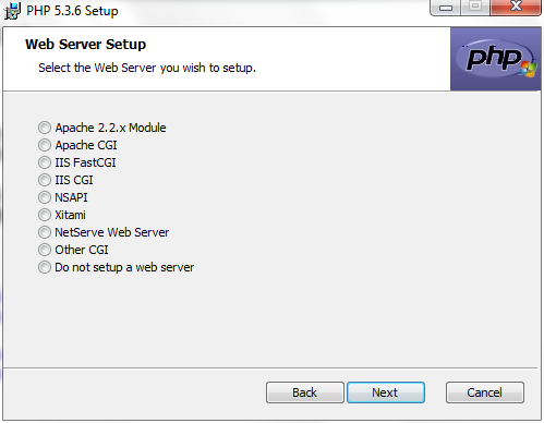1. 安装php环境,不断下一步之后到配置Web Server Setup。