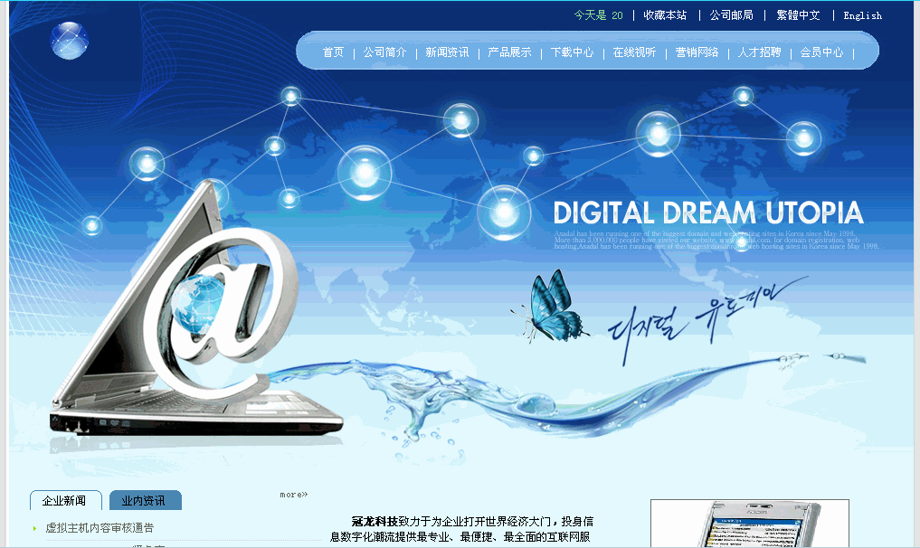 软件名称:龙虎鹰师网安企业模版SEO优化型蝴蝶蓝版
