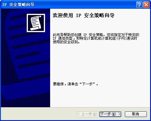 第一步:点击“开始”菜单/控制面板/管理工具,双击打开“本地安全策略”,选中“IP 安全策略,在本地计算机”,在右边窗格的空白位置右击鼠标,弹出快捷菜单,选择“创建 IP 安全策略”,于是弹出一个向导。