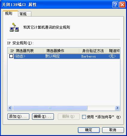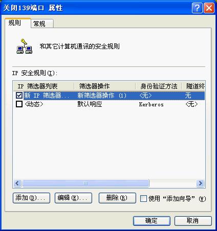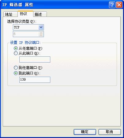 点击“确定”按钮,这样就添加了一个屏蔽 TCP 139端口的筛选器。