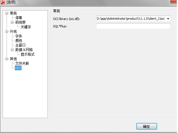 请选择"工具"->"选择…"弹出对话框,配置oci.dll的路径
