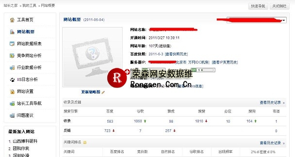 (3.)站长之家-站长工具:(tool.chinaz.com)这个工具个人最喜欢的SEO工具了,只要注册一下再在网站上验证,验证也很简单,在head里加一段它给的代码就可以了,就可以非常方便的知道网站整体SEO数据。