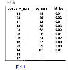让我们从一个无索引的表着手来考察索引是怎样起作用的。无索引的表就是一个无序的行集。例如,图4 - 1给出了我们在第1章“MySQL 与SQL 介绍” 中首先看到的ad 表。这个表上没有索引,因此如果我们查找某个特定公司的行时,必须查看表中的每一行,看它是否与所需的值匹配。这是一个全表扫描,很慢,如果表中只有少数几个记录与搜索条件相匹配,则其效率是相当低的。