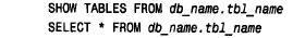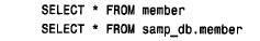 其中,tbl_name 为要引用的表名。另一种选择是由表名自身来引用缺省(当前)数据库中的一个表。如果samp_db 为缺省数据库中的一个表,下面的两个语句是等价的: