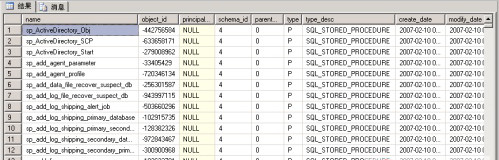 通过对比,我觉得:如果想获得SQL Server 2005中所有的储存程序,建议使用sys.all_objects这个系统视图,sys.Procedures或sp_Stored_Procedures这两个视图会因为某些未知原因,过滤掉一些内容,造成信息不全。