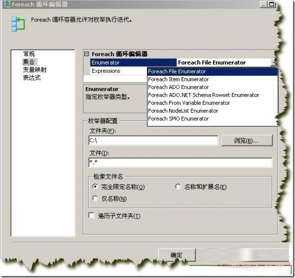 上一次我们已经介绍了简单的数据导出和导入,但是只是对单一文件进行操作,如果我们想同时对一个目录下面的所有的文件执行数据导入怎么实现呢?相当简单,SSIS在控制流中提供了Foreach循环容器,很容易理解,它和序列容器相比就是能够循环的遍历执行,能够对指定枚举器的每个成员重复执行控制流: