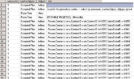 让我们用SQL Server 2005 DMVs来检验计划缓存中特设查询的效果。